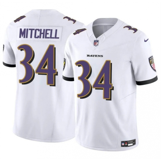 >Men's Baltimore Ravens #34 Keaton Mitchell White 2025 F.U.S.E. Vapor Limited Football Jersey