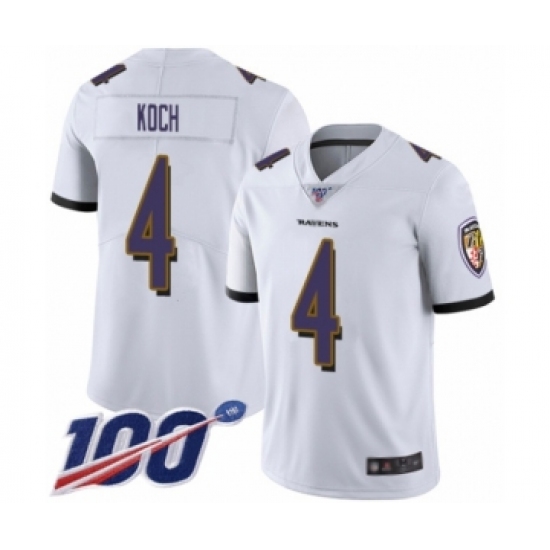 Men's Baltimore Ravens #4 Sam Koch White Vapor Untouchable Limited Player 100th Season Football Jersey