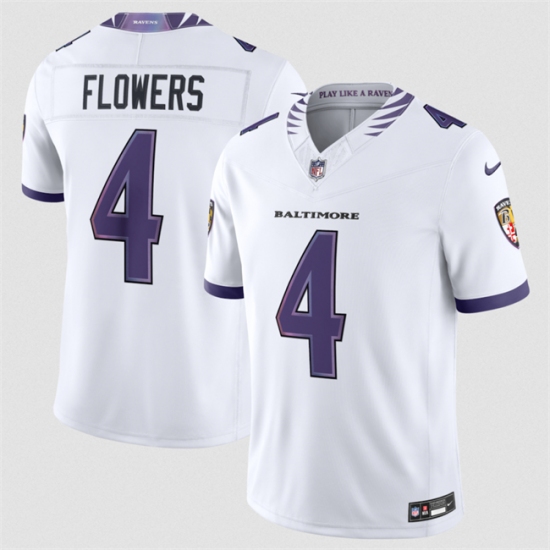 Men's Baltimore Ravens #4 Zay Flowers White 2026 F.U.S.E. Vapor Stitched Limited Football Jersey
