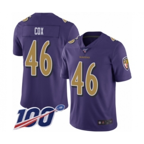 Men's Baltimore Ravens #46 Morgan Cox Limited Purple Rush Vapor Untouchable 100th Season Football Jersey