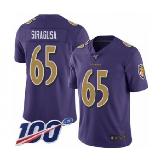 Men's Baltimore Ravens #65 Nico Siragusa Limited Purple Rush Vapor Untouchable 100th Season Football Jersey