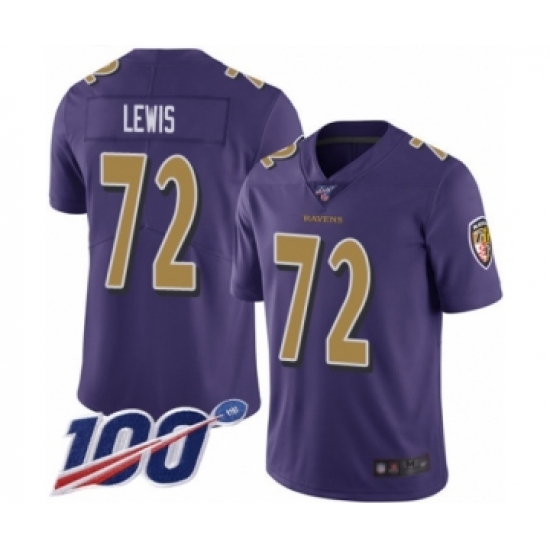>Men's Baltimore Ravens #72 Alex Lewis Limited Purple Rush Vapor Untouchable 100th Season Football Jersey