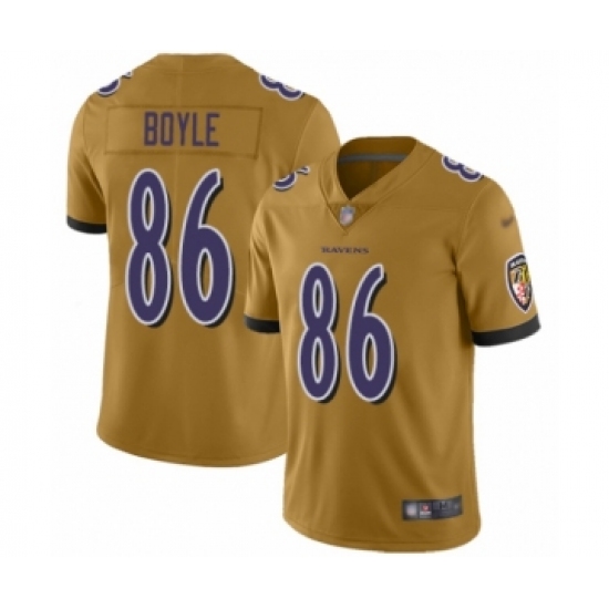 >Men's Baltimore Ravens #86 Nick Boyle Limited Gold Inverted Legend Football Jersey