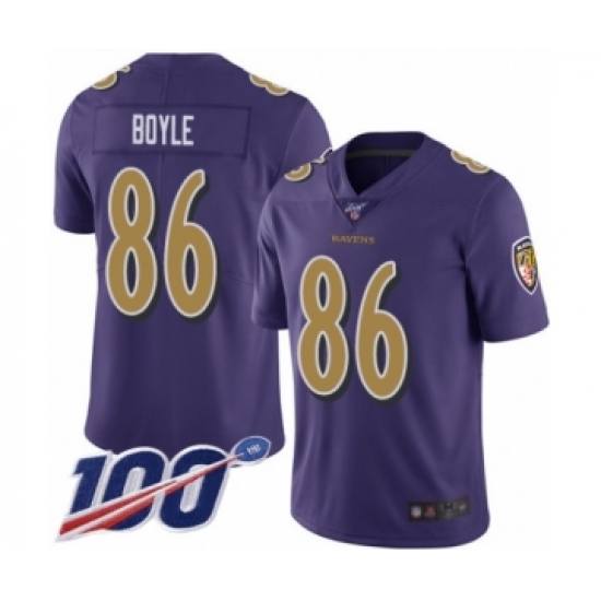 Men's Baltimore Ravens #86 Nick Boyle Limited Purple Rush Vapor Untouchable 100th Season Football Jersey