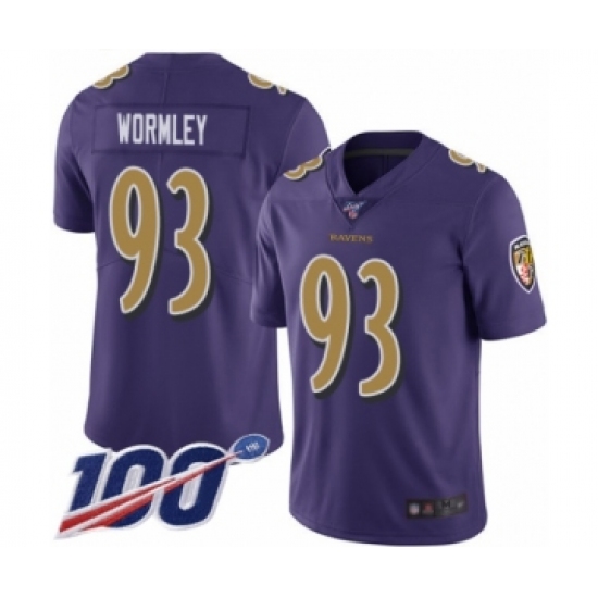 Men's Baltimore Ravens #93 Chris Wormley Limited Purple Rush Vapor Untouchable 100th Season Football Jersey