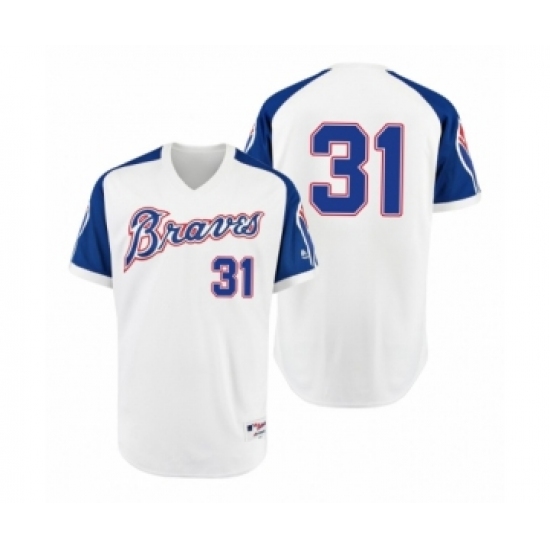 >Men's Braves #31 Greg Maddux White 1974 Turn Back the Clock Authentic Jersey