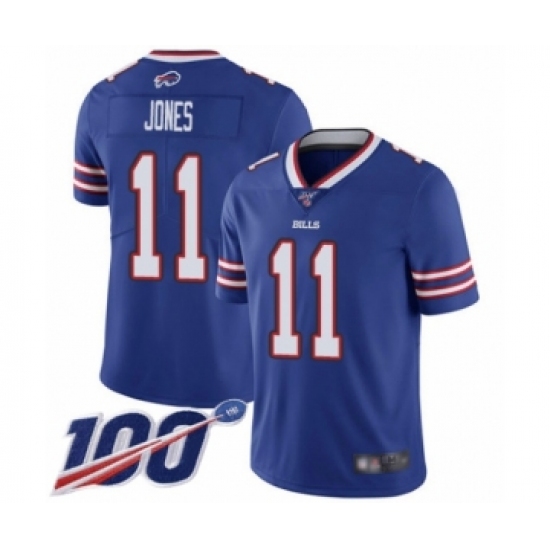 >Men's Buffalo Bills #11 Zay Jones Royal Blue Team Color Vapor Untouchable Limited Player 100th Season Football Jersey