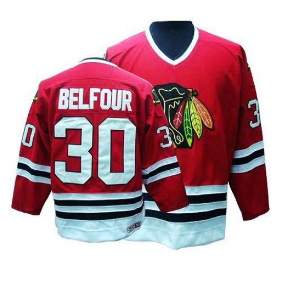 Men's CCM Chicago Blackhawks #30 ED Belfour Authentic Red Throwback NHL Jersey