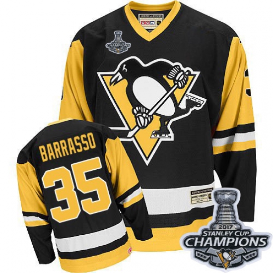 Men's CCM Pittsburgh Penguins #35 Tom Barrasso Authentic Black Throwback 2017 Stanley Cup Champions NHL Jersey