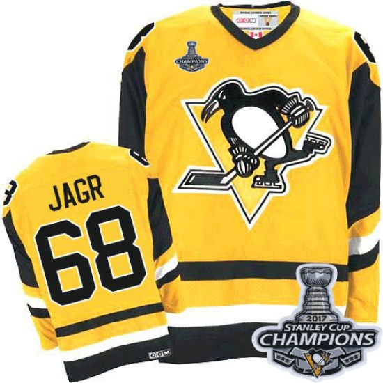 Men's CCM Pittsburgh Penguins #68 Jaromir Jagr Premier Yellow Throwback 2017 Stanley Cup Champions NHL Jersey