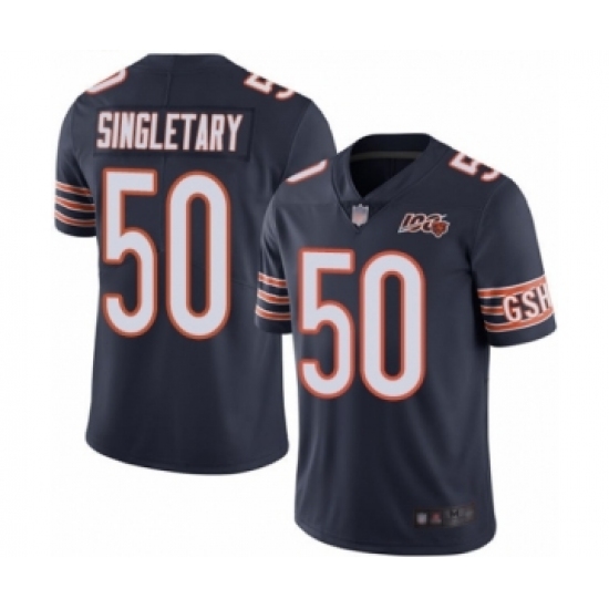 Men's Chicago Bears #50 Mike Singletary Navy Blue Team Color 100th Season Limited Football Jersey