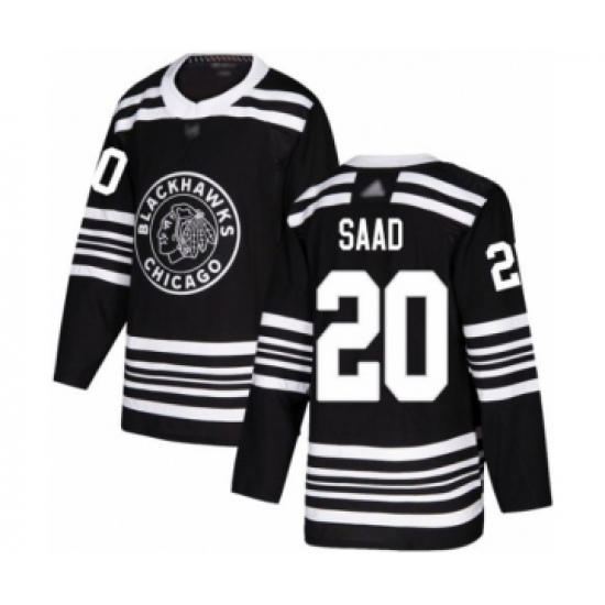 >Men's Chicago Blackhawks #20 Brandon Saad Authentic Black Alternate Hockey Jersey