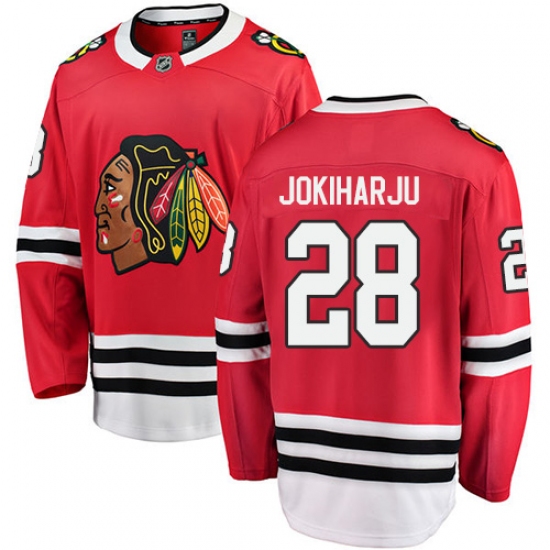 Men's Chicago Blackhawks #28 Henri Jokiharju Fanatics Branded Red Home Breakaway NHL Jersey