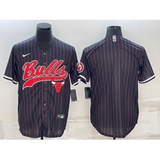 Men's Chicago Bulls Black Pinstripe Team Big Logo With Patch Cool Base Stitched Baseball Jersey