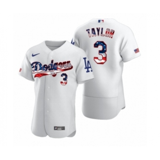 Men's Chris Taylor #3 Los Angeles Dodgers White 2020 Stars & Stripes 4th of July Jersey