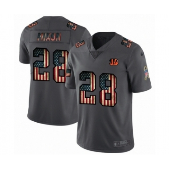 >Men's Cincinnati Bengals #28 Joe Mixon Limited Black USA Flag 2019 Salute To Service Football Jersey