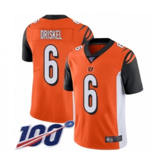 Men's Cincinnati Bengals #6 Jeff Driskel Orange Alternate Vapor Untouchable Limited Player 100th Season Football Jersey