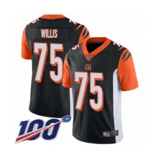 Men's Cincinnati Bengals #75 Jordan Willis Black Team Color Vapor Untouchable Limited Player 100th Season Football Jersey