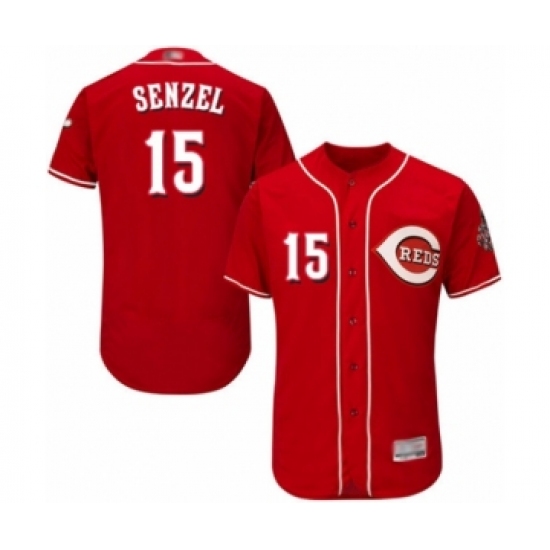 >Men's Cincinnati Reds #15 Nick Senzel Red Alternate Flex Base Authentic Collection Baseball Jersey
