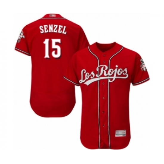 >Men's Cincinnati Reds #15 Nick Senzel Red Los Rojos Flexbase Authentic Collection Baseball Jersey