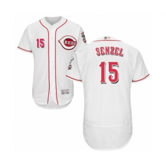 >Men's Cincinnati Reds #15 Nick Senzel White Home Flex Base Authentic Collection Baseball Jersey