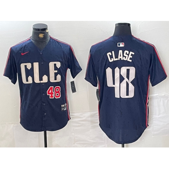 >Men's Cleveland Guardians #48 Emmanuel Clase Number Navy 2024 City Connect Limited Stitched Jersey