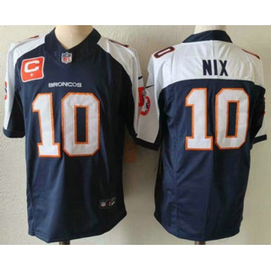 >Men's Denver Broncos #10 Bo Nix Navy Blue C Thanksgiving FUSE Vapor Jersey