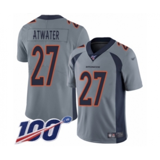 Men's Denver Broncos #27 Steve Atwater Limited Silver Inverted Legend 100th Season Football Jersey