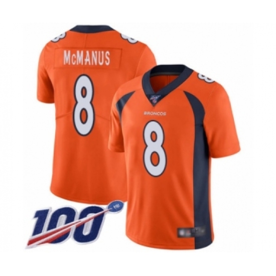 Men's Denver Broncos #8 Brandon McManus Orange Team Color Vapor Untouchable Limited Player 100th Season Football Jersey