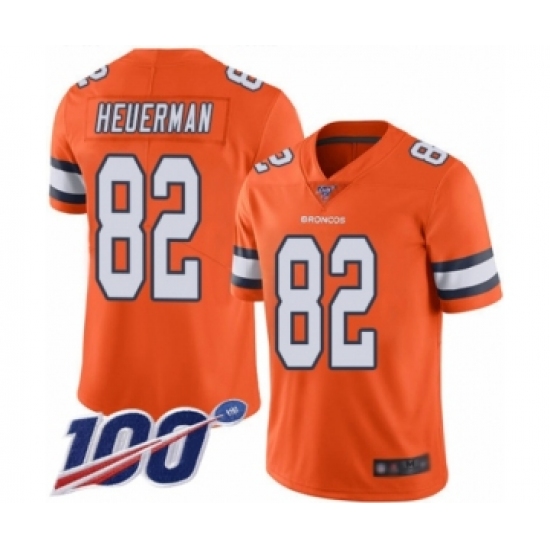 >Men's Denver Broncos #82 Jeff Heuerman Limited Orange Rush Vapor Untouchable 100th Season Football Jersey