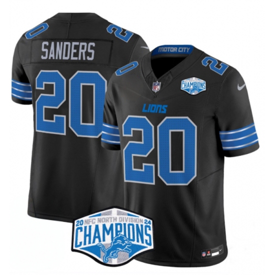 >Men's Detroit Lions #20 Barry Sanders Black 2024 NFC North Champions F.U.S.E. Vapor Limited Stitched Jersey
