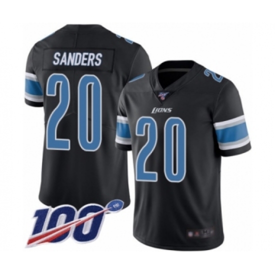 >Men's Detroit Lions #20 Barry Sanders Limited Black Rush Vapor Untouchable 100th Season Football Jersey