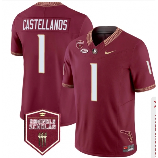 Men's Florida State Seminoles #1 Castellanos Red Limited NCAA Jersey