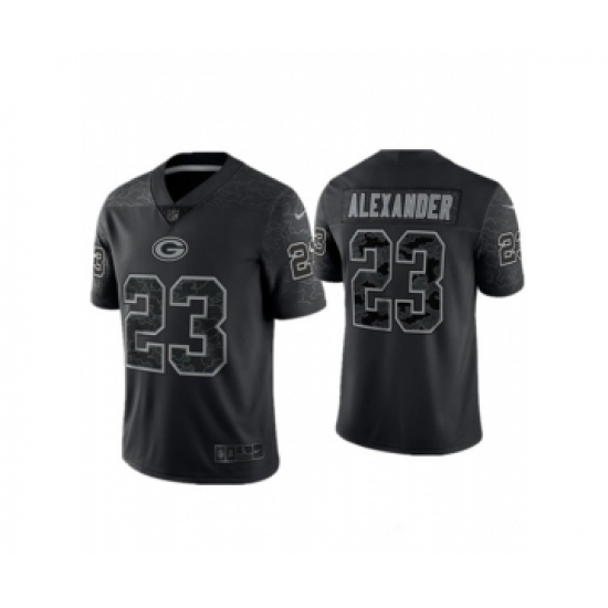 >Men's Green Bay Packers #23 Jaire Alexander Black Reflective Limited Stitched Football Jersey