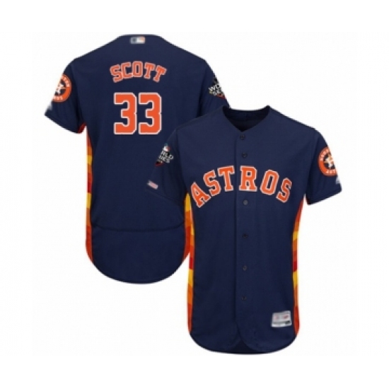 >Men's Houston Astros #33 Mike Scott Navy Blue Alternate Flex Base Authentic Collection 2019 World Series Bound Baseball Jersey