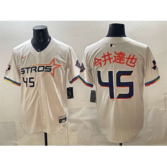 >Men's Houston Astros #45 今井達也 Cream 2025 City Connect With Texas Limited Stitched Baseball Jersey