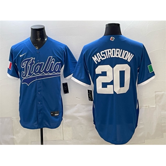 Men's Italy Baseball #20 Miles Mastrobuoni Blue 2026 World Baseball Classic Home Stadium Stitched Jersey