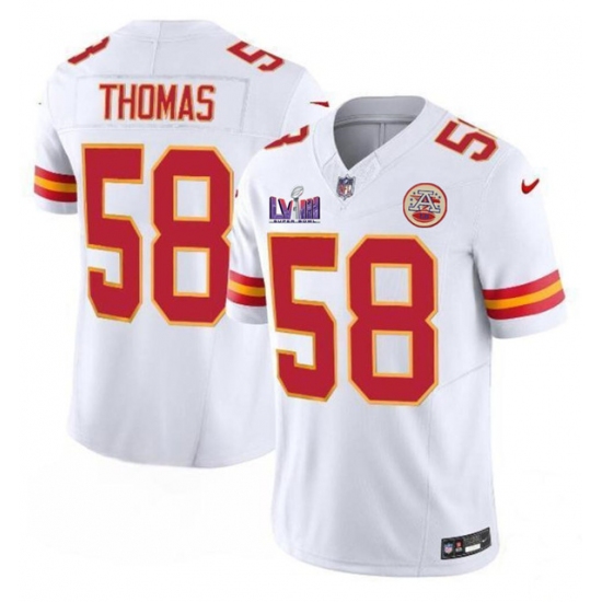 >Men’s Kansas City Chiefs #58 Derrick Thomas White 2024 F.U.S.E. Super Bowl LVIII Vapor Untouchable Limited Football Stitched Jersey
