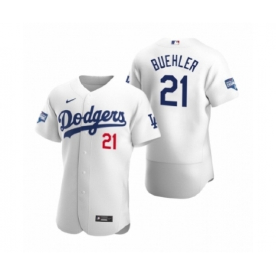 Men's Los Angeles Dodgers #21 Walker Buehler White 2020 World Series Champions Authentic Jersey