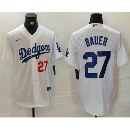 Men's Los Angeles Dodgers #27 Trevor Bauer Number White Stitched Jersey
