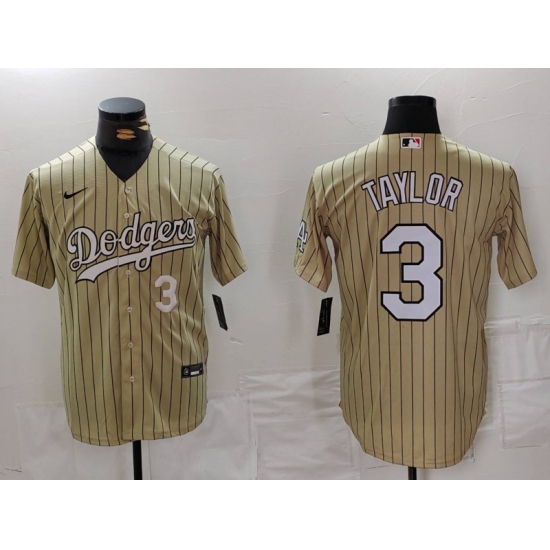 Men's Los Angeles Dodgers #3 Chris Taylor Cream Pinstripe Stitched Cool Base Nike Jerseys