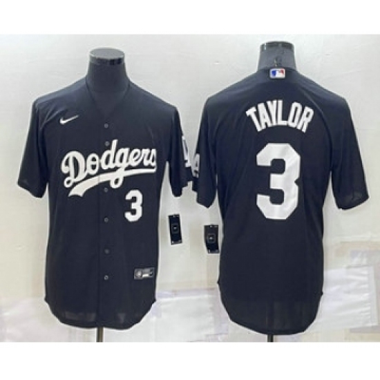 Men's Los Angeles Dodgers #3 Chris Taylor Number Black Stitched MLB Cool Base Nike Jersey