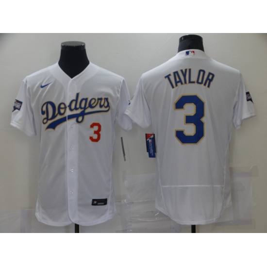 Men's Los Angeles Dodgers #3 Chris Taylor White 2020 World Series Champions Replica Jersey