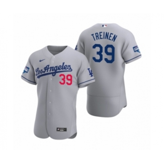 Men's Los Angeles Dodgers #39 Blake Treinen Gray 2020 World Series Champions Road Authentic Jersey