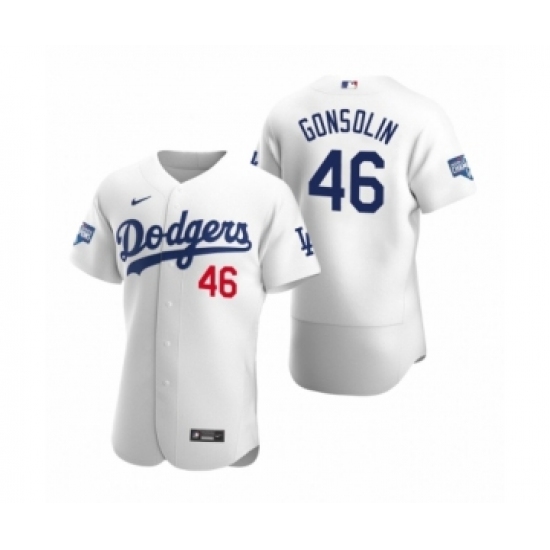 Men's Los Angeles Dodgers #46 Tony Gonsolin White 2020 World Series Champions Authentic Jersey