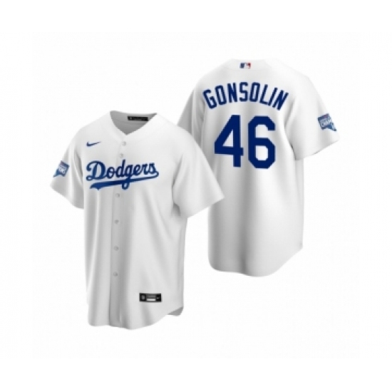 Men's Los Angeles Dodgers #46 Tony Gonsolin White 2020 World Series Champions Replica Jersey