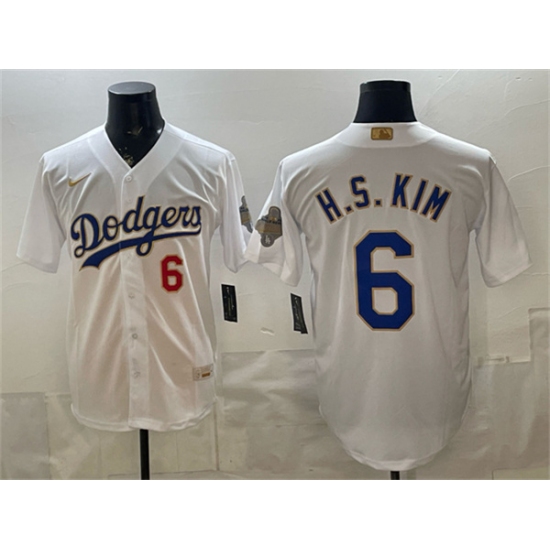 Men's Los Angeles Dodgers #6 H.S.Kim White 2026 Gold Collection Stadium Stitched Baseball Jersey