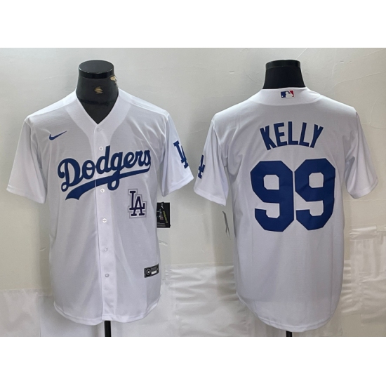 Men's Los Angeles Dodgers #99 Joe Kelly White Stitched Cool Base Nike Jersey