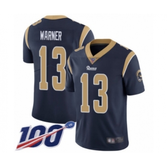 Men's Los Angeles Rams #13 Kurt Warner Navy Blue Team Color Vapor Untouchable Limited Player 100th Season Football Jersey
