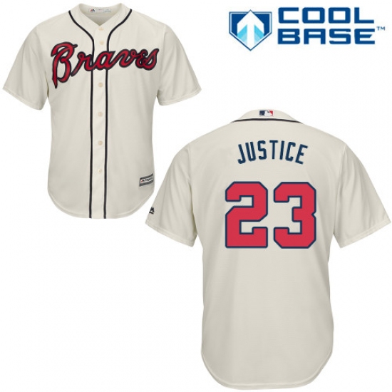 Home>MLB>Atlanta Braves>David Justice>Men's Majestic Atlanta Braves #23 David Justice Replica Cream Alternate 2 Cool Base MLB Jersey